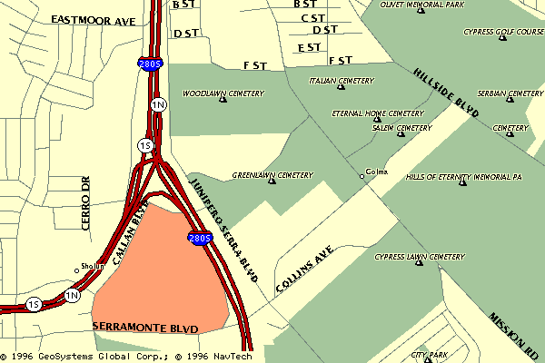 uncovered for you a map showing the cemetery, which is indeed in Colma,
