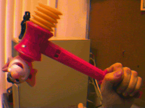 A Hammer of Bonking usually measures some ten inches long, is brightly colored, and has at least one Squeaking Impact Device (mayhap ©, but I strongly doubt it) in the head. That is, when you hit something (or -one) with it, it squeaks.